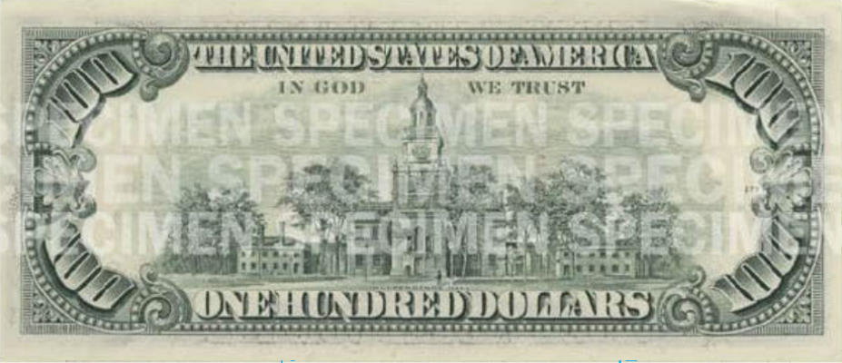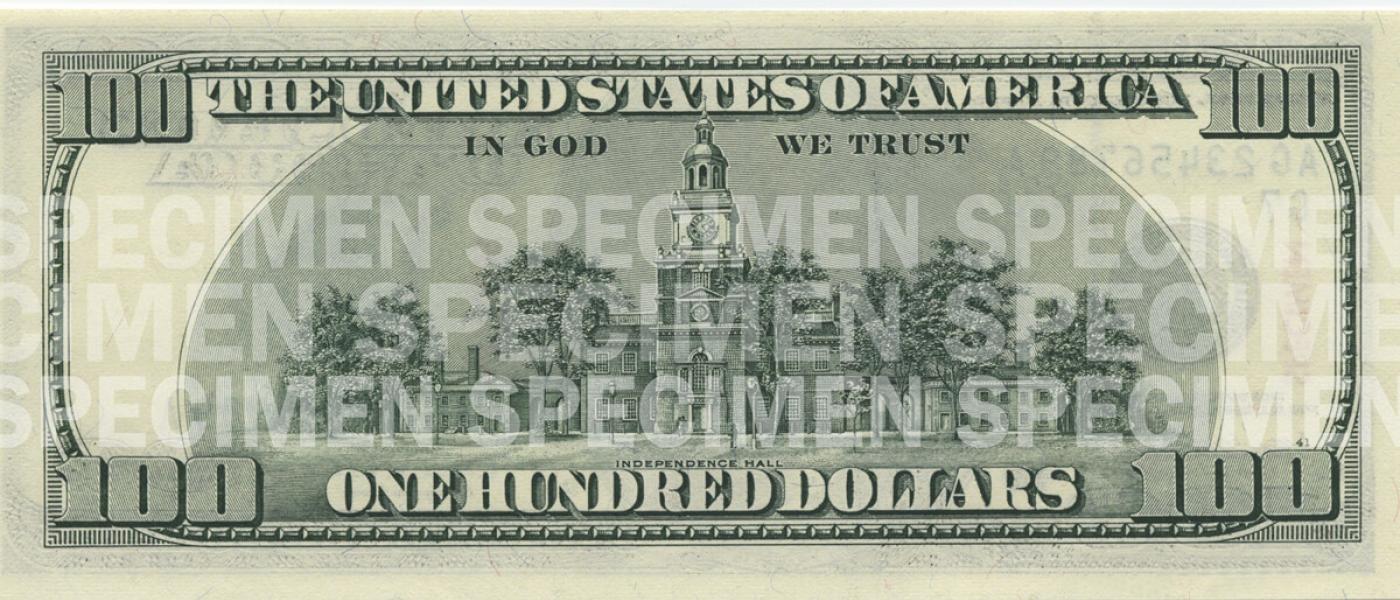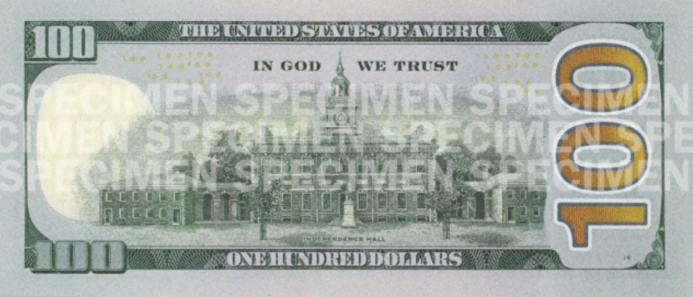 8. Retrato y viñeta: El billete de $100 tiene un retrato de Benjamin Franklin en el anverso del billete y una viñeta del Independence Hall en el reverso.
